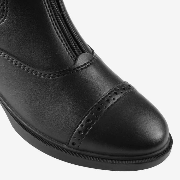These boots have the look and feel of traditional paddock boots but a quick front-zip means you're ready to go in an instant. The reliable craftmanship combines quality and a classic style. The soft, synthetic leather-like material is easy to care for and always looks new. These boots are a great value for your everyday stable and riding needs, with a quality that will last.